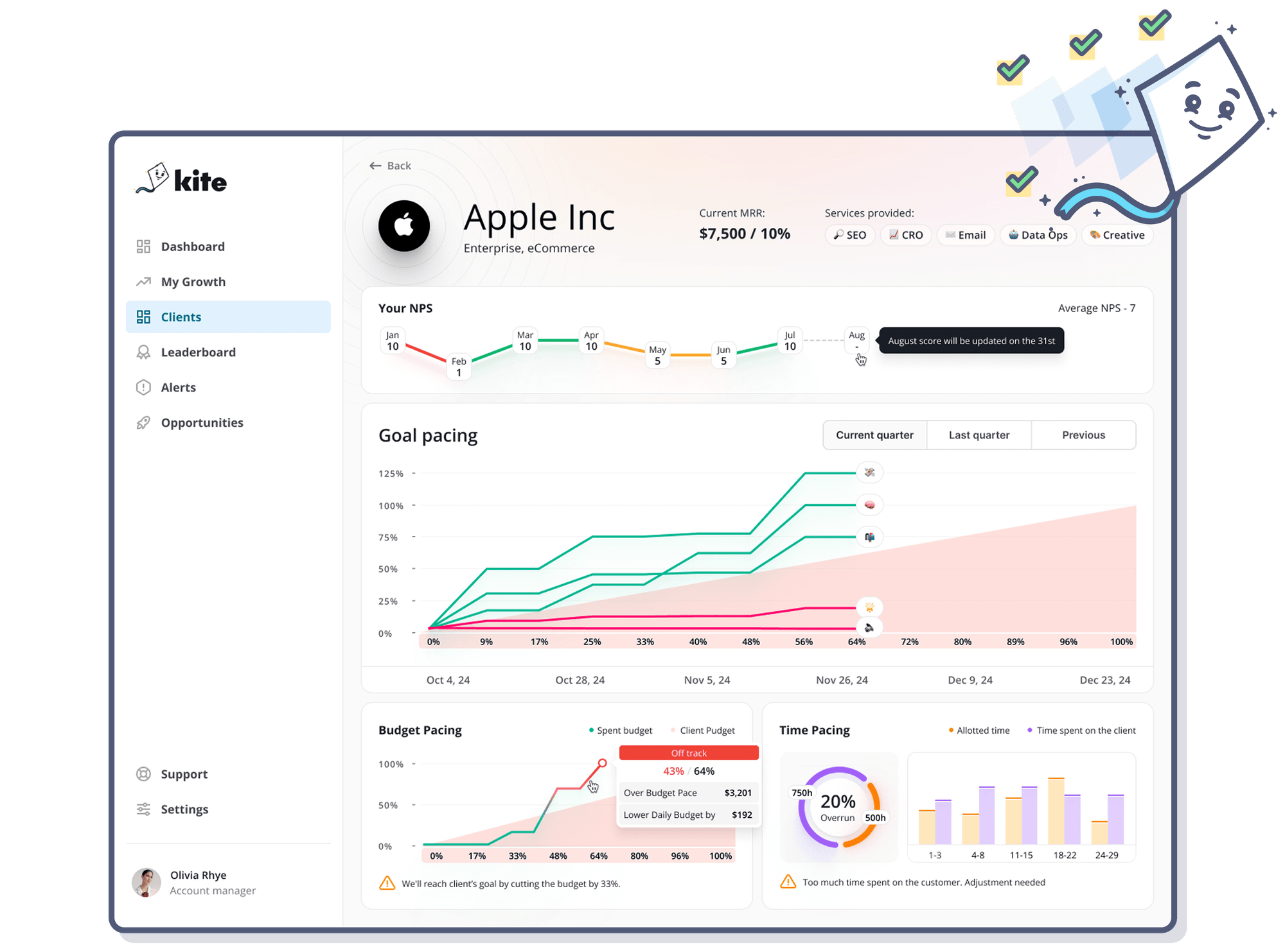 Meet Kite, our home-built software that tracks anomalies, performance bleeds, growth opportunities, and much much more, 24/7. We’ll show you in your free marketing plan.